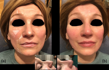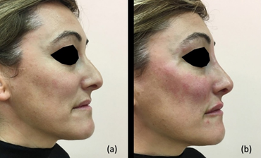 Figure 5 A 34yrs old patient of group 1needs the enhancement of the highlighting point. (a) before; (b) after injection.