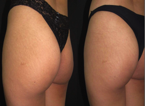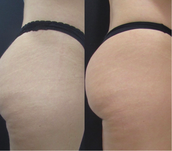 Study design: Ten female patients, aged between 20 and 45 years, with white stretch marks on the buttocks, thighs, abdomen and breasts, who met the inclusion criteria: female, phototype II-V, BMI between 18, 5-25, who read, understood, agreed and signed the informed consent form (TCLE) authorizing the use of data and photos for scientific purposes. Exclusion criteria were: autoimmune diseases, decompensated clinical conditions, pregnancy, lactation, use of systemic immunosuppressants or skin lesions at the application site. The submitted project was approved by the Ethics and Research Committee (CAAE: 79512017.2.0000.5497).