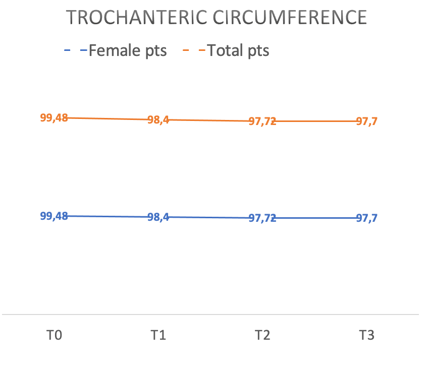 Figure 4 Trochanteric circumference loss in patients who underwent treatment. (Expressed in Centimeters).
