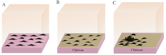 CS has been widely used in tissue engineering.8 However, CS has a relatively low mechanical strength for clinical use. Scientists tried to prepare a mixed membrane, which not only maintains the property of CS, but also enhances its mechanical strength. Nylon was chosen as one component in the mixed membrane (namely, nylon–chitosan-blended membranes, NCBM) due to its adhesion.7 Nylon and CS in the NCBM do not react chemically, each maintains its own properties.17 Different composition ratios of these two substances have different effects on the formation, adhesion and migration of MS.