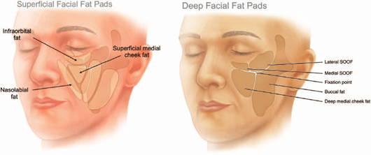 Rohrich et al.,6 et al described the different anatomical compartments of subcutaneous fat of the face. Facial aging is, in part, characterized by how these compartments change with time. The concept of separate compartments of fat suggests that the face does not age as a confluent or composite mass. While superficial compartments mainly sag with time, deep ones undergo atrophic changes, leading to loss of facial volume. Knowledge of this anatomy will lead to better understanding and greater precision when using HA fillers in the face (Figure 1)