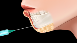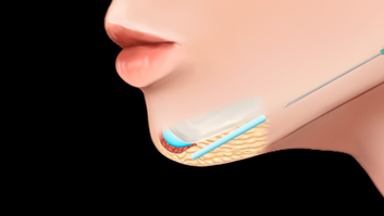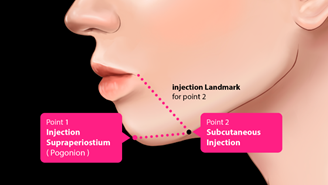 Figure 1 The landmark for this injection point with a 21G Needle is the pogonion. Reticulated HA (Revanesse Shape G’ 203).