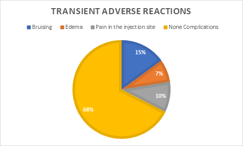 Ethical considerations: All patients agreed to the study and had an inform Consent explaining possible adverse reactions and all patients signed the informed consent form. The study was approved by the Clinic's Derma Laser KPW Ethic Scientific Committee. Safety was assessed through the recording of all adverse events after the injections, including physician and patient observations throughout the course of the study.