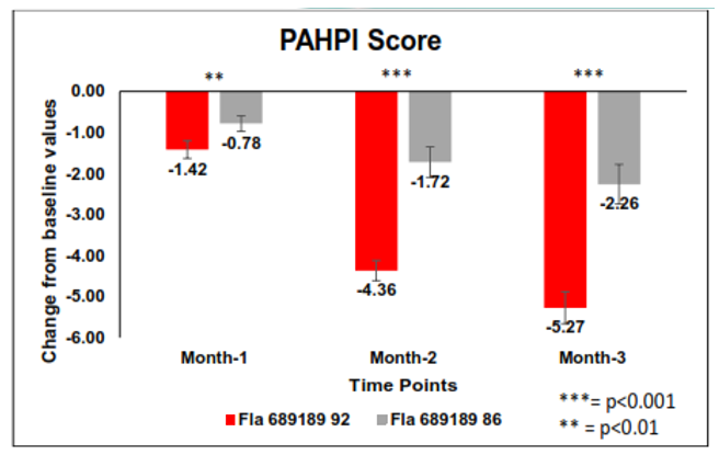 Table 1 Summary of change from baseline PAHPI and IGA scores of Groups A and B at months 1, 2 and 3
