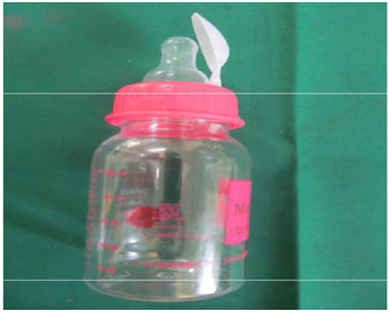 The main goal of cleft palate infants is maintaining a proper nutrition and a proper feeding technique for growth and development of infant and prepare the baby for corrective surgery. There are two basic tasks useful for infant feeding, sucking actions which draws the milk into the mouth and swallowing which transfer the milk from the or pharynx to stomach.1‒4 It is observed that babies use different techniques to suck the milk from a bottle and from the breasts. During regular breast feeding, infant uses tongue to suck the milk from a nipple by a negative pressure and in bottle feeding infant use gums and very frequently use tongue and palate to position the nipple and create sufficient negative pressure to suck the milk.3‒5 Cleft palate infant experience a difficulty in regular breastfeeding, because of improper seal of palates and sufficient sucking suction to pull milk from a nipple and infant experience problems such as excessive air intake, nasal regurgitation, inadequate milk intake; lose weight, longer duration to feed. Due to improper feeding and proper guidance, support can lead to maternal stress, anxiety and poor mother and infant bonding.5‒9 A variety of artificial nipples with regular large base and long shaft, soft nipple with an enlarged outlet, large nipple base, compressible bottles and cup feeding are available.10,11 In the article modified feeding bottle was constructed it restores the oral and nasal separation during feeding and provide sufficient negative pressure; it prevented the entry of the tongue into the cleft, provides or helps to maintain the nutrition, easy to construct and smooth surface without any irritation to palatal area. This modified feeding bottle has many advantages and is useful in the initial period of infant.