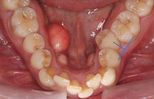 Similarly, the authors propose the novel diagnostic tool of alveodontal probing and the term "cup" which can be employed to describe alveolar bone hypoplasia associated with malaligned teeth (Figure 2). Like pocket depth, cupping measurement can be assessed in millimeters using a periodontal probe oriented parallel to the occlusal surface. Cupping depth offers valuable diagnostic information, including the extent of alveolar bone deficiency and the potential for future alveolar bone restoration.