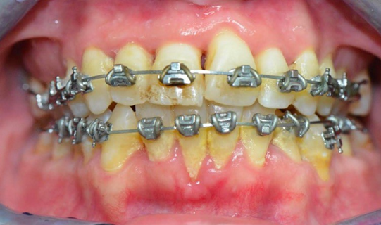 Figure 4C Bracket placement on all teeth as previously lingually inclined roots are orthoerupted (man-made eruption).