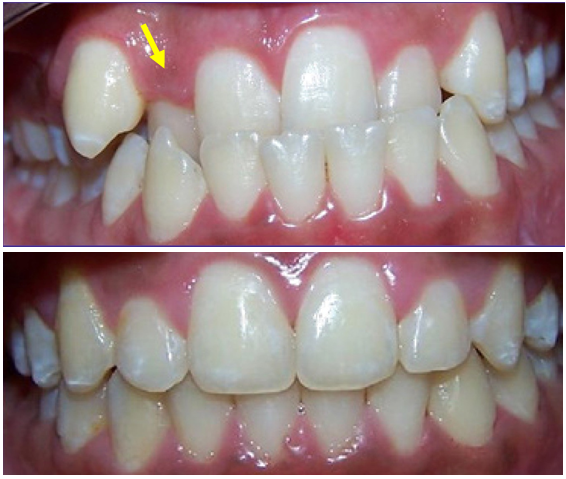 This represents a clinical presentation with the use of quantifying diagnostic terms of “slight”, “moderate” or “severely” crowded teeth. The level of crowding severity is no longer relevant as nearly all non-skeletal cases can be treated non-extraction. The specific loss of localized normal boney architecture and associated localized soft tissue inflammatory changes caused by malaligned roots has been termed Orthodontosis and Orthodontitis, respectively30 (Figure 1).
