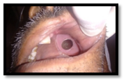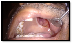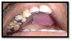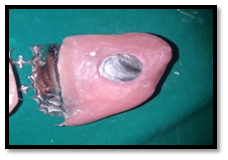 A 60-year-old man visited the department of Prosthodontics, Government Dental College and Hospital, Nagpur for the rehabilitation of a four-year-old maxillary defect after hemi maxillectomy due to squamous cell carcinoma of the left maxilla. The patient requested restoration of his masticatory function, improvement of speech and deglutition. On extra oral examination, the left suborbital area, the left nasal alar area, and the left angle of the mouth are depressed that restrict the mouth opening and intraoral examination revealed that partial resection of the left maxilla extending from pre maxilla to the anterior border of the soft palate (Figure 1A & Figure 1B). Teeth remaining 11, 12, 13, 14, 15, 16, 17, 18 in upper ach. In lower arch teeth present are 31, 32, 33, 34, 35, 36, 37, 41, 42, 43, 44, 45, 46, and 47.
