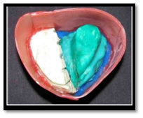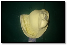 Metal frame work was tried in patient mouth and impression of defect was made with medium fusing impression material (green stick) and light body impression material (AQUASIL)(Figure 6a & 6b).