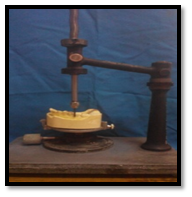 Preliminary impression of the maxillary arch along with the intraoral defect was made using irreversible hydrocolloid (Dentalgin; Prime Dental Products, Mumbai, India). Primary cast was made with type III gypsum material (Kalstone; Kalabhai Karson, Mumbai, India) (Figure 2). Surveying of the diagnostic cast was done and mouth preparation steps were done according to surveying (Figure 3).