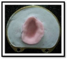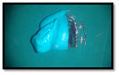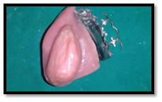After performing teeth arrangement on palatal base-plate component of obturator was flasked and finished the prosthesis(Figure 10a-10d).Try it in patient’s mouth with bulb and the palatal plate component of the Obturator simultaneously (Figures 11A–11C). Check for any sore spots using pressure indicator paste, and deliver the obturator. Instruct the patient regarding use and maintenance of the Obturator. Schedule the recall appointments for prosthesis maintenance.