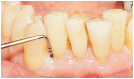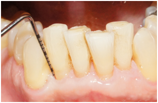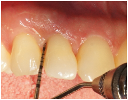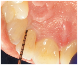 Figure 4a Probing 12 months after surgery reveals PD of 4 mm on the disto-palatal aspect of tooth #7.