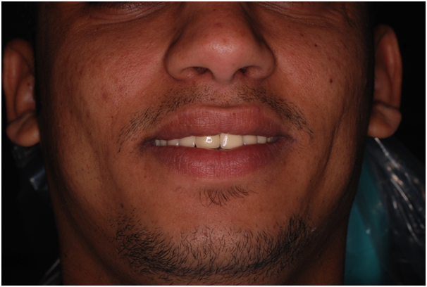 An individual appearance and his or her perception of it has a major impact on his or her self-esteem; reflects a person's overall subjective emotional evaluation of their worth.1,2 That's said, appearance and its perception affect the person quality of living and social interaction.3,4 The smile is the first thing people notice when meeting other people for the first time. Discolored teeth affect smile majorly according to the severity of discoloration, were minor discoloration can be unnoticeable, but as it becomes darker, it becomes more noticeable and thus the more dramatic effect of the patient smile awareness; Besides the loss of the Vertical Dimension of Occlusion affect esthetics and function, a person will appear older with dropped mouth corner and raised chin5,6 as well as adversely affecting the mastication process and supporting tissue health.5−7 The case discussed in this article was self-conscious as explained by him due to his darkened teeth as well chewing difficulties, it's quite noticeable the impact of teeth esthetic alteration on his self-esteem at the end of treatment.