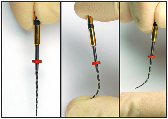 Successful Endodontic therapy is based on cumulative results of complete debridement and disinfection of root canal system, followed by a three dimensional obturation.1 However, certain anatomic complexities such as very fine canals such as those commonly encountered in geriatric cases and extremely curved canals can pose a real challenge to the treating dentist.2 Inability to completely negotiate the entire root canal up to its physiologic terminus, often results in endodontic failure.3 Rotary Endodontic Instruments brought a paradigm shift in the field of Endodontics.4,5 However, as the use of these fast cutting Ni Ti Files progressed across the globe, the advantages were paralleled by the limitations and drawbacks.6 The instrument related procedural errors such as ledge formation, transportation, perforations etc. became increasingly common, leading to major concerns over the use of aggressive rotary endodontic files. This led to the researchers’ world over to rationalize the possible cause of such mishaps. Eventually a concept emerged which revolutionized the technology of rotary endodontic files, which was based on ‘Controlled memory’ in contrast to the classical ‘Shape memory’ one. A new Nitinol rotary instrument files with controlled memory (Hyflex® CM, Coltene) was introduced which was machined from a wire (termed CM-wire) previously subjected to a proprietary, novel, thermomechanical processing procedure. Clinical and experimental studies have indicated that these new Hyflex® CM rotary instruments have outstanding clinical fatigue resistance.7 The Controlled memory effect helps the file to retain the shape of the canal even when it is out of the canal (Figure 1). This property is responsible for avoiding procedural errors such as ledge formation, transportation, perforations etc. the extreme flexibility and lesser taper of these files make them very advantageous in curved canal cases. Of late, another major transformation has happened in file technology which has taken the endodontics to a next level. This has been introduction of EDM files (Figure 2). EDM stands for Electrical Discharge Machining. This is a unique process of making the files process using electric discharge machining. Work pieces are machined in the EDM manufacturing process by generating a potential between the work piece and the tool. The sparks generated in this process cause the surface of the material to melt and evaporate. This creates the unique surface of the new Niti files and makes the Hyflex EDM files stronger and more fracture resistant.8 This entirely unique combination of flexibility and fracture resistance makes it possible to reduce the number of files required for cleaning and shaping during root canal treatment without having to compromise preservation of the root canal anatomy.