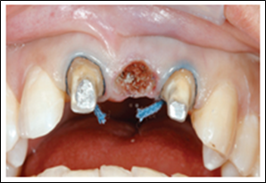 A 67-year-old man visited our office for a physical examination. The patient seemed edentulous on the upper arch, where he had a total removable prosthesis, during the clinical examination. His issue was that the denture was not stable, and he found it difficult to speak and eat. The choice was made to put four implants in Figure 15 a. Four abutments were screwed to the implants after the surgical operation (Figure 15 a) (Figure 15 b).