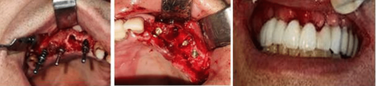 Good primary stability was achieved for all implants placed according to the digital planning allowing for an immediate loading protocol. However, to avoid excessive mechanical forces caused by bruxism, cover screw abutments were placed and dental fixed provisional prosthesis was cemented (Figure 3).