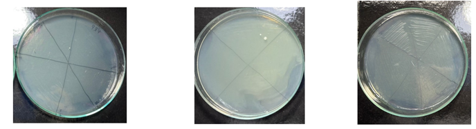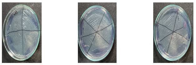 The external surface of the tubes was evaluated using a direct smear technique on nutrient agar. A significant increase in bioburden was observed after clinical handling by 3 operators, compared to baseline pre-use conditions. This increase demonstrates cross-contamination mediated by contact with contaminated gloves, transfer from instruments, or deposition of aerosols from the surgical field (Figures 5 and 6). Regarding the microbial profile of the internal contents, three distinct species were identified under aerobic conditions, compared to only one species under anaerobic conditions, notably one sample with simultaneous growth under both conditions (polymicrobial contamination). This asymmetry suggests greater vulnerability to colonization by environmental microorganisms under oxygenated conditions.