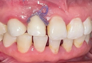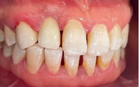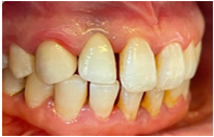 Intraoral examination showed an inadequate hygiene, a Periodontal thick ,a sufficient attached gingiva , a defective mesially extended metal-resin bridge replacing the 12 and a symmetry of the neck line. (Figures 2–4)