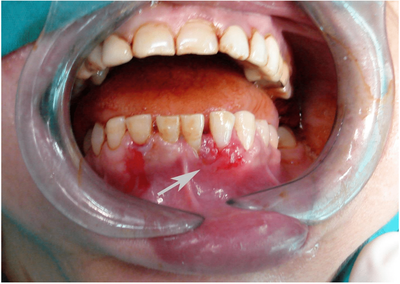 Due to diverse clinical appearance of the gingival SCCA and its resemblances to different benign lesions, early diagnosis of gingival SCCA could be represent a significant challenge to the clinician. Subsequently, delays in diagnosis and treatment may be result from misdiagnosis. Gingival SCCA exhibits cervical node metastases in one-third or more of cases.5 In addition, early bony invasion is a frequent occurrence because of the proximity of the underlying alveolar bone.6,7