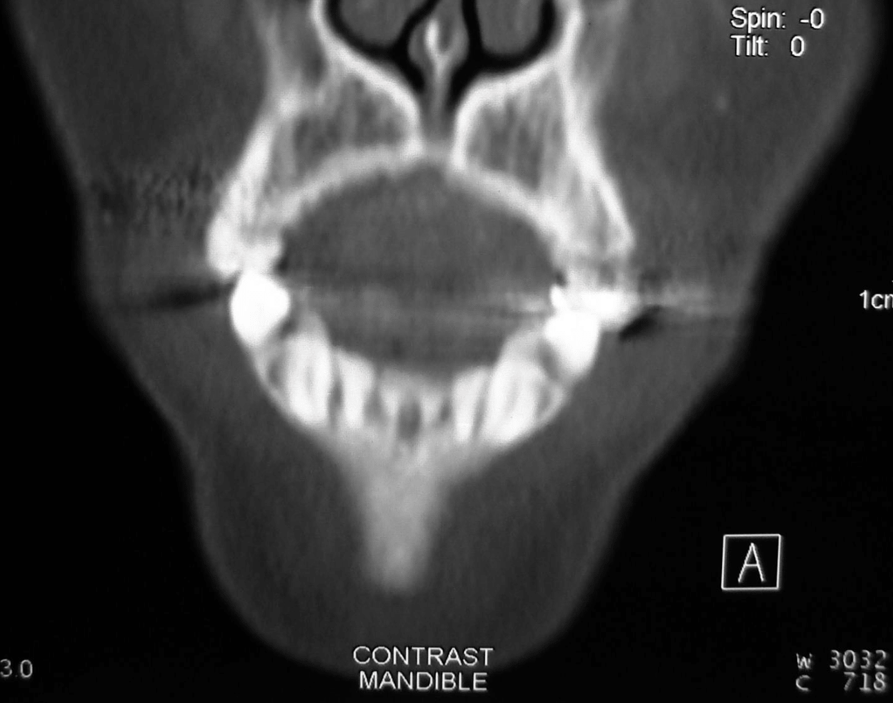 At the end of the distraction (Figure 5A and B), the distraction removed and the chemotherapy no significant negative effect on the bone formation by distraction osteogenesis. Both soft tissue and bone healing were uneventful.