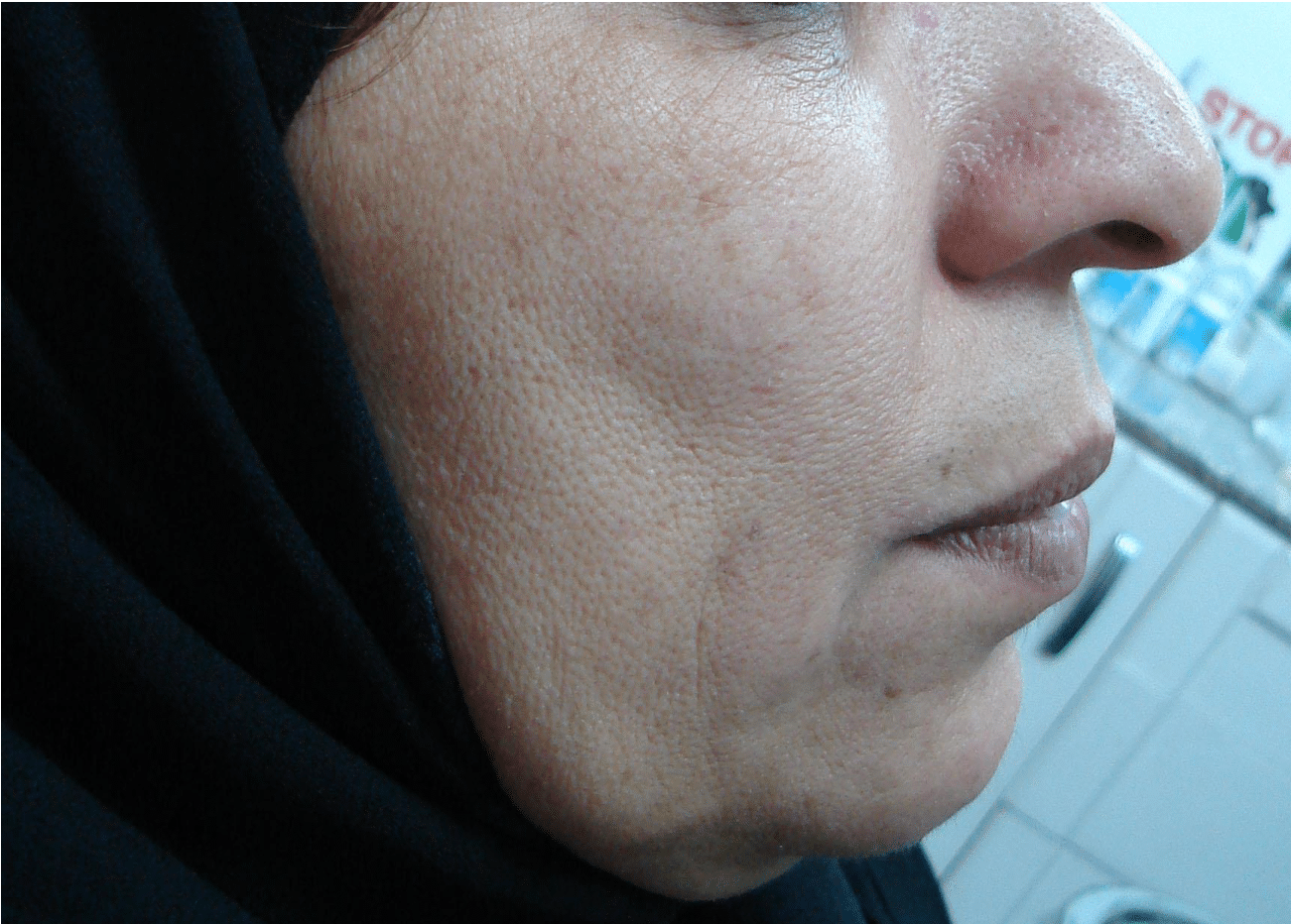 Two weeks later, partial denture was made for replacement of the missing teeth (the patient refused to make implants). The patient profile was good and patient satisfaction was high (Figure 6A and B). Follow up extended to 3 years with no recurrence.