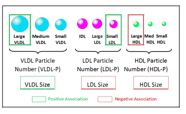 Because insulin resistance precedes T2D the LP-IR score and its lipoprotein components are able to predict future T2D.4,16-20 Among>26,000 women enrolled in the Women’s Health Study (WHS) all six components of LP-IR were associated with the development of T2D, both before and after adjustment for standard lipid and non-lipid risk factors.18 A similar analysis of the JUPITER (Justification for the Use of Statins in Prevention: An Intervention Trial Evaluating Rosuvastatin) trial revealed that specific lipoprotein parameters (increased LDL particle concentrations, larger VLDL and smaller HDL particle size) were associated with increased risk of developing T2D, even after adjusting for traditional risk factors including triglycerides, LDL and HDL cholesterol. Furthermore LP-IR and its lipoprotein components were significantly associated with T2D development in the MESA. In this study, a cohort of 5,314 non-diabetic study participants was followed for a mean follow-up of 7.7 years in which 656 cases of clinically diagnosed T2D were documented. LP-IR and two of its components, large VLDL -P and VLDL size, were associated with the development of T2D independent of established risk factors, glucose, insulin, or HOMA-IR.20 It has even been suggested that LP-IR may be a convenient clinical tool to screen and monitor patients at risk for T2D including during statin therapy.