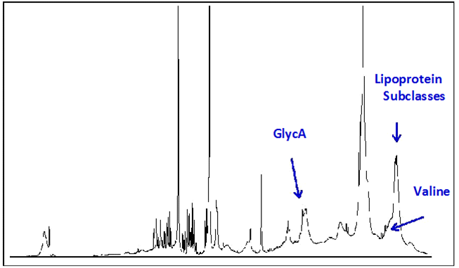 Circulating markers of inflammation, including acute phase proteins, have been shown to be associated with risk of progressing to T2D.15,30,31 Moreover, low-grade chronic systemic inflammation is recognized as a causal factor in the development of insulin resistance and pancreatic ß-cell dysfunction.15,32,33 A recently described biomarker, called GlycA, is quantified from the same NMR spectra collected for lipoprotein particle analysis and is correlated with markers of inflammation including high sensitivity C-reactive protein (hsCRP), fibrinogen, interleukin -6 and serum amyloid A.34-39 The GlycA NMR signal originates from glycosylated proteins and captures both the circulating levels and complex glycosylation patterns of the most abundant acute phase proteins.40,41 These data support the hypothesis that GlycA is a unique marker of systemic inflammation.