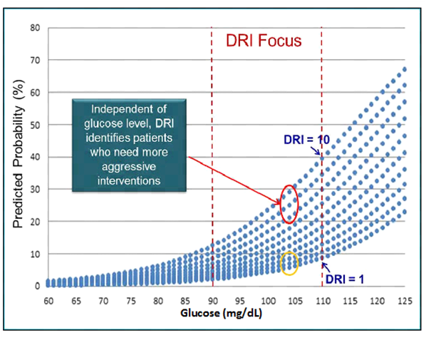 Based on this early evidence, the DRI score, measured on a clinical NMR instrument the Vantera® Clinical Analyzer (LipoScience) may serve to differentiate future risk of T2D and help guide the selection and intensity of interventions intended to prevent progression to diabetes as proposed in the complications-centric algorithm for weight loss therapy by the American Association of Clinical Endocrinologists.58,59 Additional studies need to be performed to compare the DRI score with additional biomarkers and parameters used for predicting T2D in order to prove this is to be the case. However, once fully developed, a simple tool such as the DRI could be used by physicians to alert patients of their heightened risk of progressing to diabetes even before they become prediabetic allowing time for effective lifestyle modification to prevent or delay diabetes onset.