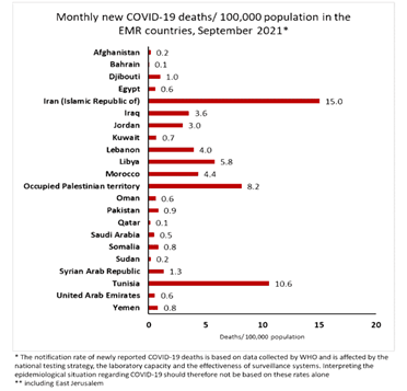 The 22 countries of the eastern Mediterranean region will likely report over 17 million cases of COVID-19 and more than 314,000 deaths by the end of 2021; Covid19 was the major health crisis experienced in the region in the 21st century at multidimensional levels. Where its consequences will keep burdening the region for decades. The current study discovered that the global health system was extremely vulnerable and poor in dealing with the epidemic's rapid onset and spread, as well as the continued growth in the number of diseases and deaths caused by it. The current pandemic has several lessons for us to learn.8