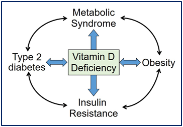 Epidemiologic and cohort studies suggest that low 25 hydroxyvitamin D [25(OH)D] affects numerous and diverse physiologic functions, such as control of cell growth (e.g., cancer cells), protection against autoimmune disorders and bacterial and viral infections, and neuro-muscular coordination. Low vitamin D levels may worsen certain disorders, including cancer, metabolic syndrome, obesity, T2D, infectious diseases, and autoimmune disorders. Whether increased incidences of these diseases are consequences of widespread vitamin D deficiency is not clear. However, many of the reported relationships between vitamin D deficiency and diseases are based on epidemiologic observations.