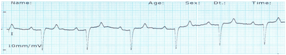 Electrocardiogram measures the changes in the electrical activity of the heart during each cardiac cycle. Different ECG waveforms are useful in regular clinical practice in the veterinary medicine. Deflections in the ECG waveform represent the change in electrical activity caused by atrial or ventricular depolarization and repolarization.8 Animals with heat block can be diagnosed by the determination of the PR interval. Cases with first degree heart block had the elongated PR interval. In ECG, P wave without a subsequent QRS complex before the next P wave indicates second-degree heart block. An ECG trace with P waves and QRS complexes beating independently of each other indicates the cessation of atrioventricular node which indicates third-degree heart block.9 Irregular opening or closing of sodium or potassium channels in the heart causes prolonged QT interval which indicates the delayed repolarization of the cardiomyocytes.5