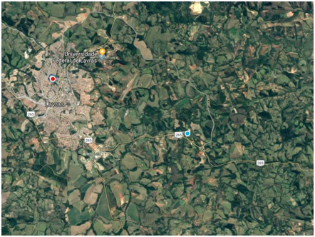 Lavras is a city in Southern Minas Gerais state, Brazil; located at an altitude of 919m (Figure 1). It has a population density of roughly 99,229 inhabitants and an area of the city is 564.7km² (IBGE 2014). The climate of the areas is of the Cwa type according to the Köppen classification, with an average annual temperature of 19°C and average annual rainfall of 1,530mm. In the soil sampling period, the temperature variation ranged from 10.0 to 33.8°C with an average temperature of 28°C and average precipitation of 14mm (Meteorological Station of the Federal University of Lavras - UFLA). The town native vegetation is represented by a mosaic of different phytophysiognomies of forest and Cerrado, which have been partially by substituted by pastures and agricultural crops, only small fragments of native vegetation remaining, usually quite anthropized.7