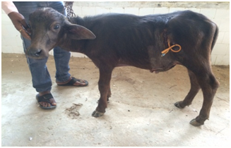 Bovine male calves are given minimal care during their initial growing period. Urolithiasis is one of the commonly encountered affection in male bovines probably due to narrow, long and tortuous urethra with presence of sigmoid flexure.1 This combined with the less attention given to male bovines, tends the cases of anuria to go unnoticed leading to cystorrhexis, thus requiring emergency cystorrhaphy. The report of large number of urolithiasis cases in a particular breed or saline region may also hint towards a hereditary or demographic predisposition. In bovine calves the calculi are sandy in nature, mixed with blood and other tissue debris,2 at times filling the entire urethra, thus reducing the success of manual removal through urethrotomy and making chemical dissolution of such calculi through pH modulator along with tube cystotomy more practical.3,4 Hence, the present study was undertaken to evaluate the health status of male bovine calves with obstructive urolithiasis and its treatment using tube cystotomy followed by oral feeding of urinary acidifier ammonium chloride for dissolution of calculi.