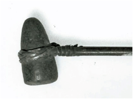 Another region of Melanesia where stones of the same shape as the Louisiades pounders are used are the Solomon Islands, the archipelago closest to Sudest and Rossel in a north-easterly direction. There too, the stones are used as nutcrackers. Unlike those of Sudest and Rossel, they are attached to a cane-handle and appear to be more uniform in size than those of the Louisiades. Twenty examples of the Solomons nutcrackers in the British Museum, London, the Field Museum of Natural History, Chicago, the Australian Museum, Sydney, and the Solomon Islands National Museum, Honiara, that have been measured range in length from 5 to 9 cm. Another, once in the collection of Leo Fleischmann, Sydney, is 6 cm long. Jean de Surville observed the use of one of these nutcrackers during his 1769 voyage through the Solomon Islands; at a place on the north-east Coast of Santa Isabel Island he named Port Praslin.8 He records that it was called hapiau there.