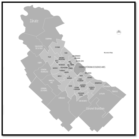 Figure 1 Metropolitan Area of Buenos Aires, 33 municipalities and the “conurbanados” cordons. Source: metropolitan observatory of the Professional Council of Architecture and Urbanism.