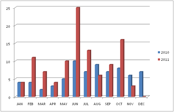 Figure 1 Occurrence of Salmonella infection between 2010 and 2011 in the study area.