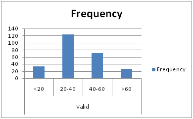 A total 245 patients with duration of six month were selected for the study. We enrolled patients within six month period time. Total of patients visiting the hospital of age group of 14 age to 60 plus .The frequency of patients with age were classified in the (Figures 1-7).