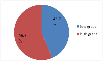 Figure 2 Fever of the patients was including both low grade and high grade .The percentage of the fever almost same that was 56.3 percent of high grade and 43.7 percent having low grade.