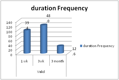 Figure 4 The duration of the patients with the symptoms last for one week to three months. The 39.4 percentage for 1 week duration, 3 week last for around 48.0 percent of patients and 12.6 percent of patients last for 3 months.