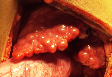 Figure 4b Macronodular cirrhosis seen in a young boy with recurrent acute exacerbation of hepatic vena cava syndrome during cholycystectomy for gallstone (reproduced with permission SM Shrestha, S Shrestha . Hepatic vena cava syndrome: a common cause of liver cirrhosis in children in Nepal, Trop Gastroenterol 2014;4:35:85-95).