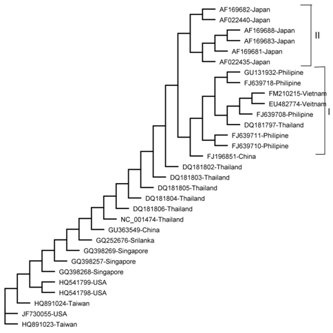 A total of 30 DEN-2 NS3 sequences were used in this study. All the sequences were obtained from the GenBank which included DEN-2 isolate from Thailand, Singapore, Japan, Philippine, USA, Vietnam, Taiwan, Sri Lanka and China.