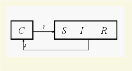 The SIRC model defined (γ-1) and (δ-1) as the average time spent by individuals in each of the compartments of C and R respectively, and that the function represented the average age of a cross-immune individual, 25 and that they were inter-related.25,26 Among the three levels (δ,and γ,and) of the time span factor in the original general flow diagram,25 we found one non-redundant dummy19 variable beside (δ). We propose that one epidemiological parameter aside from the two epidemiological parameters (γ,δ) be needed for (Figure 9). At least one non-redundant epidemiological parameter should exist between the cross immune compartment and the single combined “SIR” compartment.