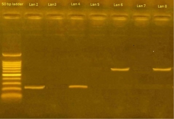Lan 1: Shows 50 bp ladder.