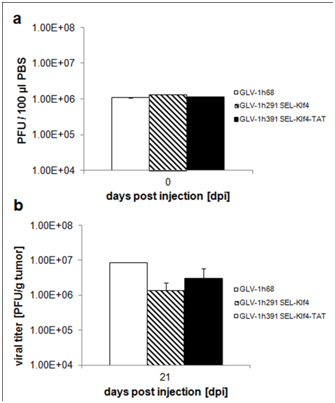 Table 1 Confluent HT-29 cells were infected for 24 hours at an MOI of 5.0 with GLV-1h68 or klf4-expressing GLV-1h291 or GLV-1h391