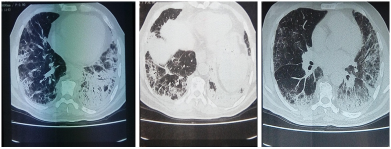 High–resolution computed tomography of the chest showed bilateral micronodular opacities, thickening of septal lines, traction–bronchiectasis, all consistent with bilateral interstitial non-specific pneumonia (Figure 3).