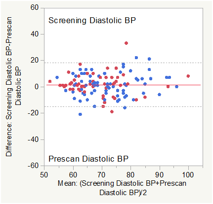 Figure 3B Bland Altman Plot for Diastolic Blood Pressure (Screening vs. Pre-Scan).