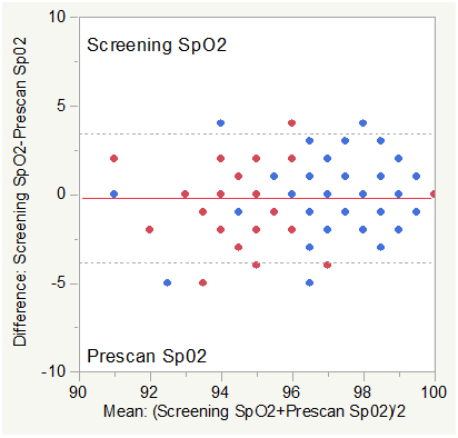 Figure 4B Bland Altman Plot for SpO2 (Screening vs. Pre-Scan).