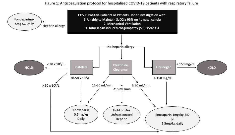 Figure 1 A depiction of the therapeutic anticoagulation protocol used for COVID-19 patients with respiratory failure.