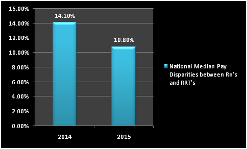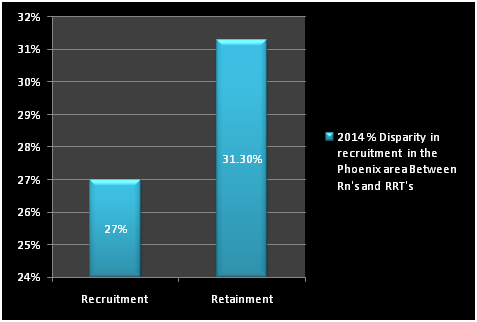 The following data gathered below will show that the disparity in pay between RN’s and RRT’s in the south west region, including Arizona, are parallel to the national average in the year 2015 of 10.8%. (Occupational Outlook Handbooks, Payscale.com, Salary.com, indeed.com and BLS.gov. 9–23